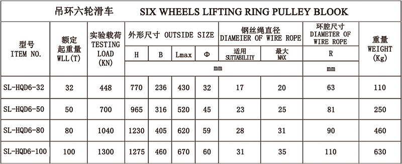 1、吊钩特点:优质合金钢模锻而成,3倍安全系数。 2、滑轮:铸铁滑轮、铸钢滑轮、热轧滑轮。 3、滑轮套芯:复合耐磨铜套、纯铜套、滚珠轴承、滚针轴承。 4、其他吨位可以定做。